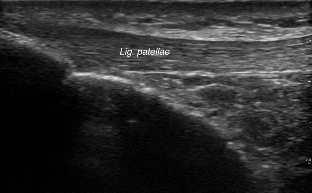 4. Das Lig.patellae (Patellasehne) ist eine äußerst starke sehne der Oberschenkelmuskulatur, welche sich sehr gut mit Echtzeit-Ultraschall darstellen lässt.